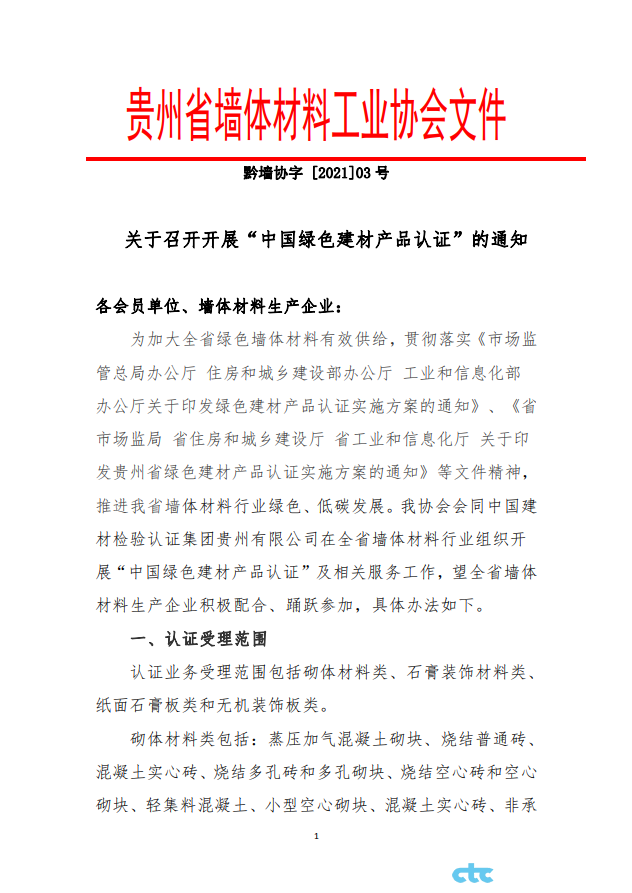 我公司與貴州省墻體材料工業(yè)協(xié)會(huì)開展“中國綠色建材產(chǎn)品認(rèn)證”相關(guān)工作